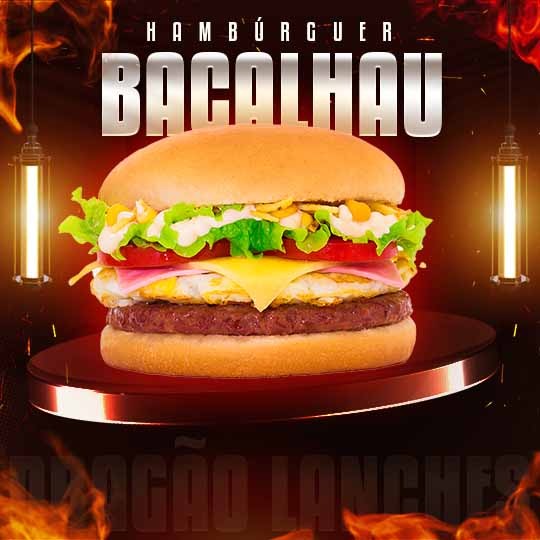 X-BACON COM BACALHAUCARNE DE HAMBÚRGUERR, BACALHAU, BACON, PRESUNTO, QUEIJO, SALADA E MILHO VERDER$ 23,00