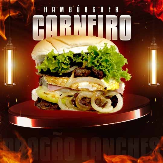 X-BACON COM CARNEIROCARNE DE HAMBÚRGUERR, CARNEIRO, BACON, PRESUNTO, QUEIJO, SALADA E MILHO VERDER$ 20,00