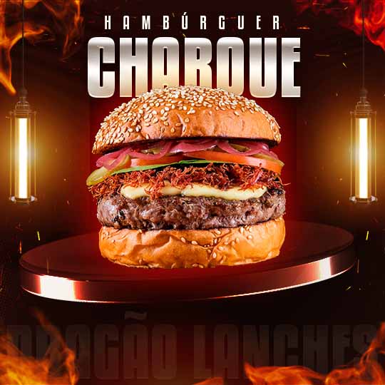 X-BURGUER DE CHARQUE COM PICANHACARNE DE HAMBÚRGUER(PICANHA), CHARQUE, PRESUNTO, QUEIJO, SALADA E MILHO VERDER$ 19,00