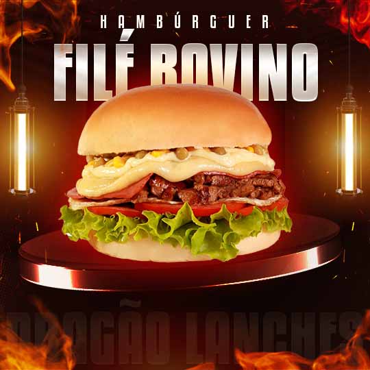 X-BURGUER DE FILÉ COM PICANHACARNE DE HAMBÚRGUER(PICANHA), FILÉ, PRESUNTO, QUEIJO, SALADA E MILHO VERDER$ 20,00