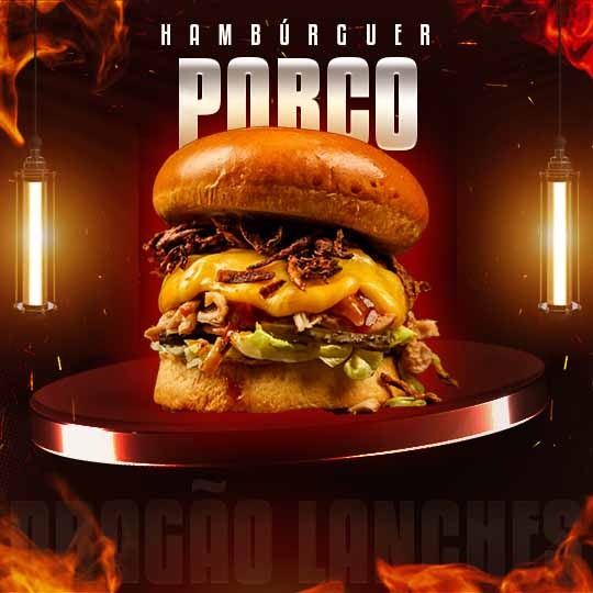 X-BACON COM PORCOX-BACON COM PORCO CARNE DE HAMBÚRGUERR, PORCO, BACON, PRESUNTO, QUEIJO, SALADA E MILHO VERDER$ 16,00
